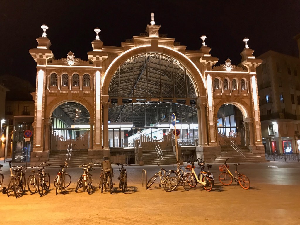 - Mercado Central: Like all of Spain and Europe, a good, central market is mandatory. This is no exception. The market is long and skinny, but I have been hundreds of markets so the I am less interested in the products than I am the architecture. This market is beautiful, but especially at night. There are some great photo opportunities in front of this market.