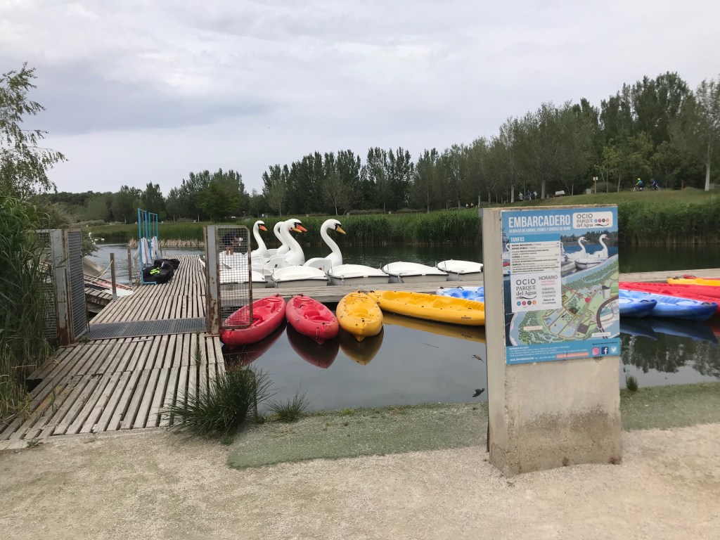 - Parque del Agua: On google maps, this park does not look too big or too far from the Old Town. But it is both. Zaragoza is hot during summer (we visited end of May 2021), and the walk from Old Town to the park is long and sweaty. We love to walk a lot but this was even a bit too much for me. We soon discovered how to rent scooters (patinetes) for the teenagers and this made them very happy. Once at the park, we rented a peddled Swan boat that circled some gardens via canals. After a long walk, peddling this Swan soon became tiresome and quite hot. But, alas, the teenagers enjoyed it with some music and IG photo opportunities. If peddling is too much, one can also rent a row boat. Both boats are quite cheap (I think 6 euros) and worthy for an hour of entertainment.
